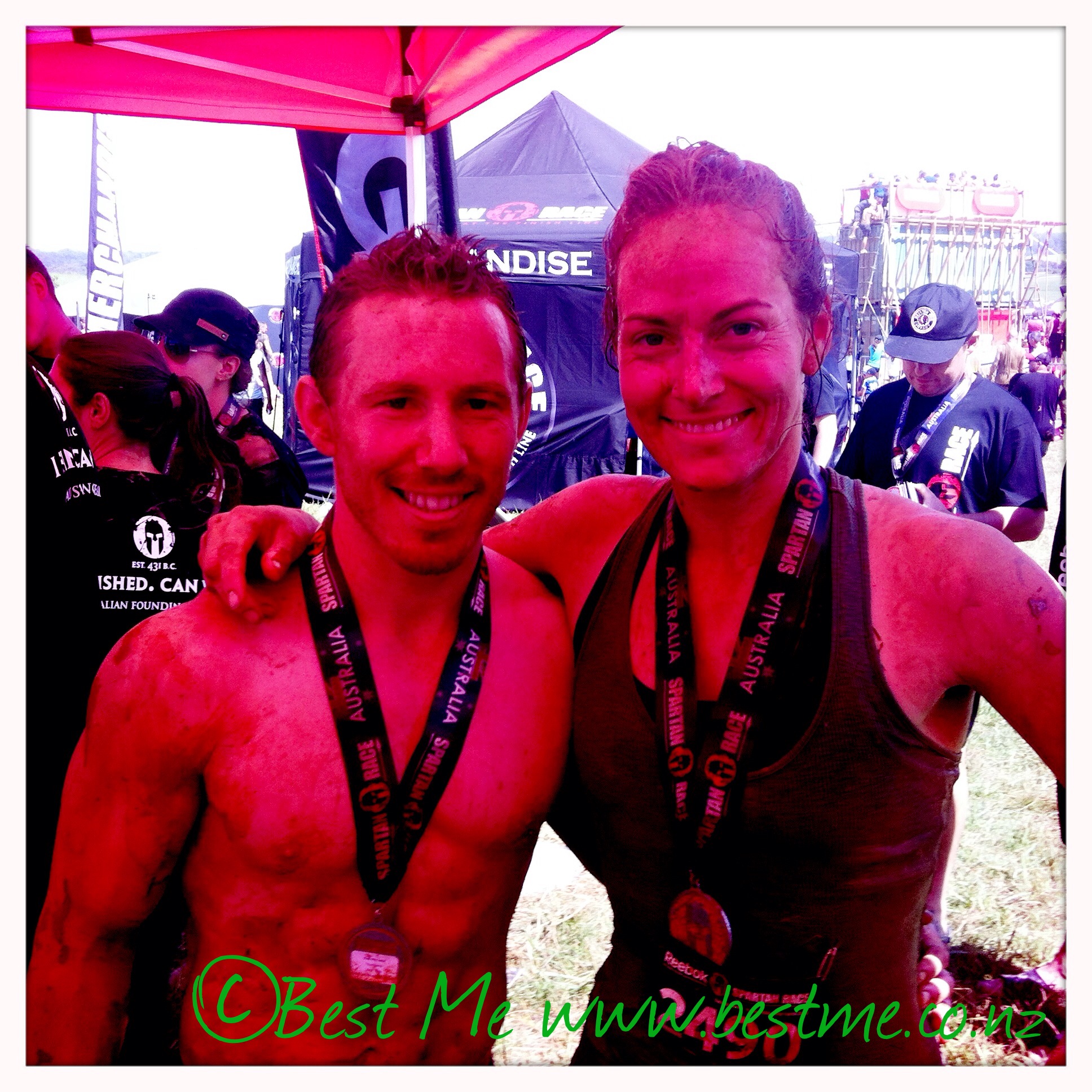 The final task was to get through the Spartan gauntlet and we had a plan for this also – Helen would follow me, I would either throw a deceiving sidestep (at least attempt to!) or tackle him and clear the path for Helen. The sidestep worked and we crossed the line unscathed!