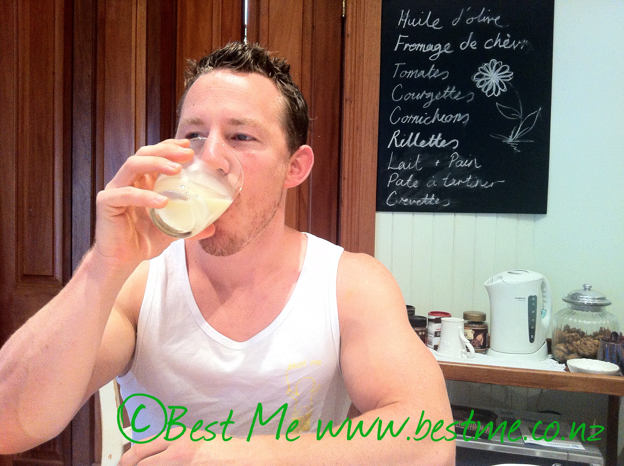 On race day we woke up had our Good Green Stuff and 20-30 minutes later backed it up with some yummy eggs, veggies and fruit (mostly from their back yard) washed down with a freshly squeezed orange juice.