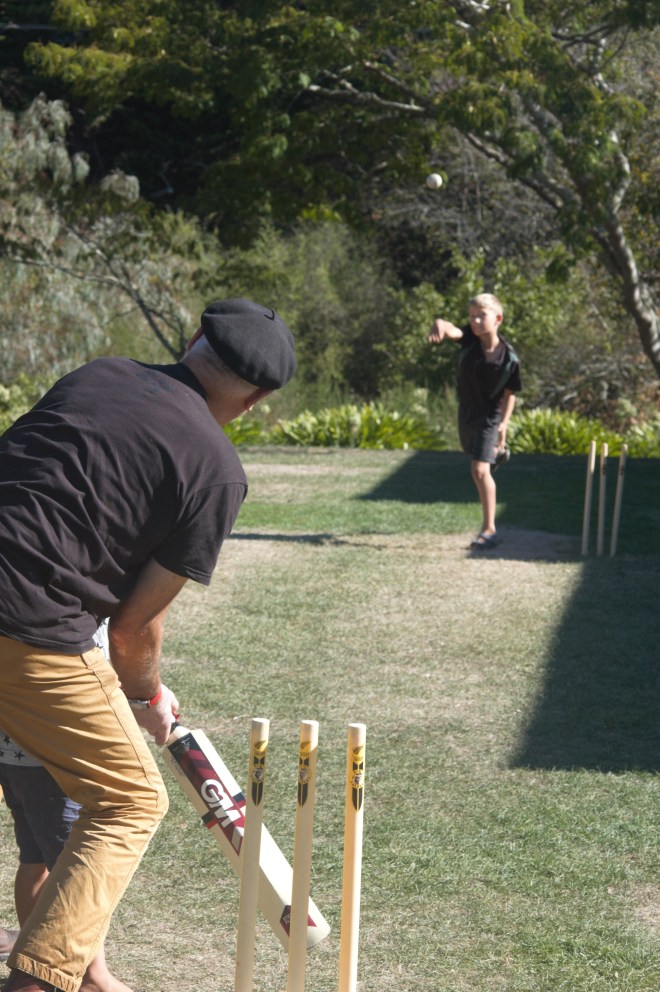 At home in the garden the cricket continues, Grandad is currently not out on 24 (off 34 balls) and Dan is bowling………….